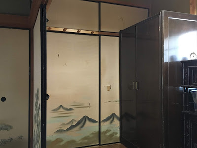 実家の和室の奥の、畳からフローリングに貼り替えた部屋のボロボロのふすま・・・。